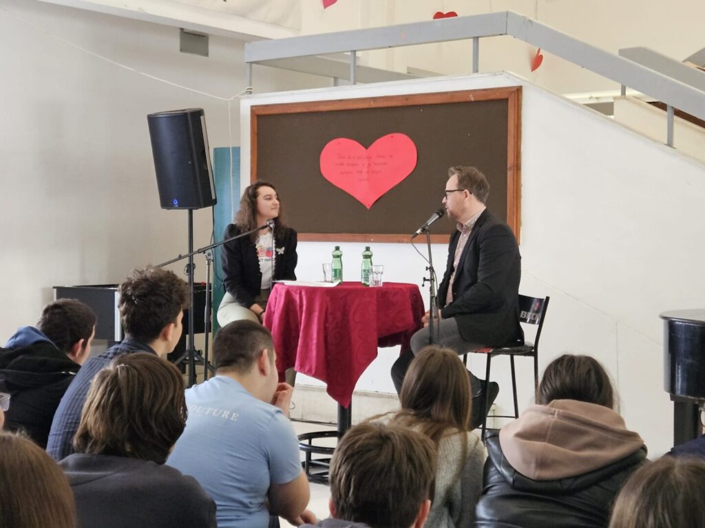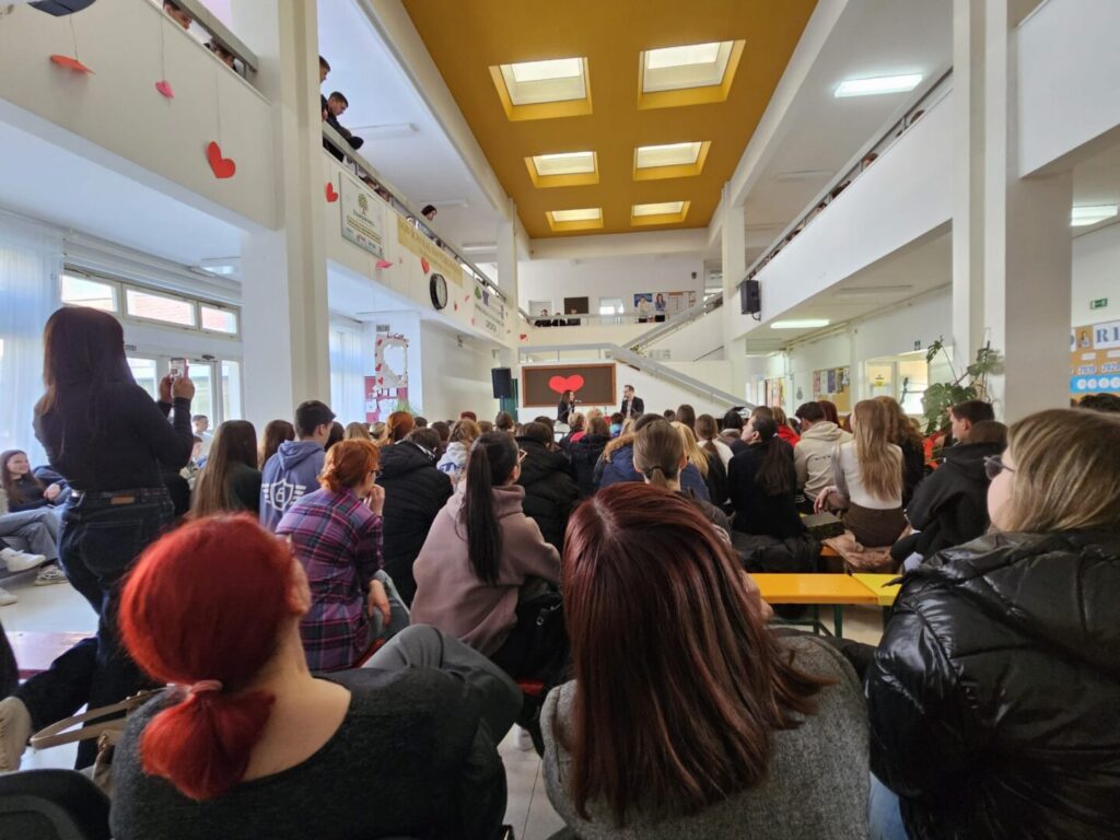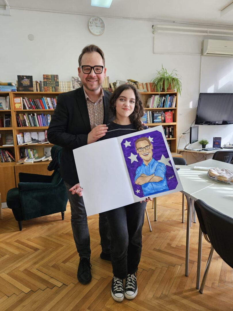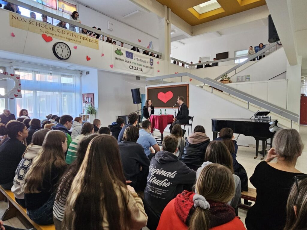 Povodom obilježavanja Svjetskog dana radija našu školu 18. veljače 2026. posjetio je Frano Ridjan – glas i lice koje svi poznajemo s radija i malih ekrana, Gospodin Ridjan nas je osvojio svojom energijom, humorom i zanimljivim životnim pričama. Glavna tema razgovora bila je mladi i mediji, a razgovor je vodila učenica 3. razreda Tihana Benko, uz podršku knjižničarke Višnje Jeren, prof., mr. sc. Jadranke Dorešić, dipl. oec., te ravnateljice Josipe Ilić, dipl. oec.