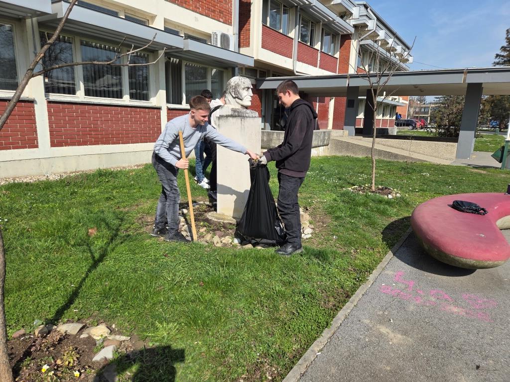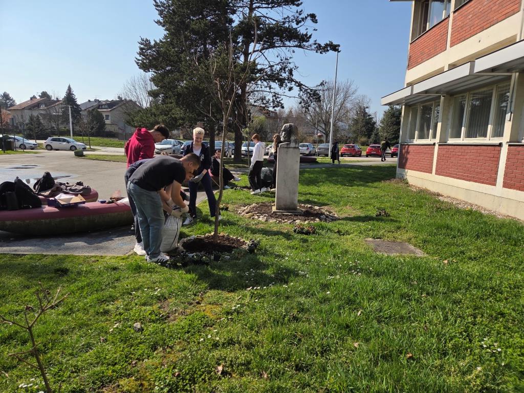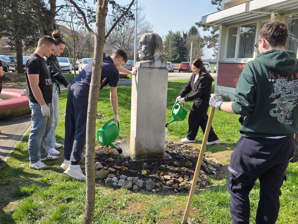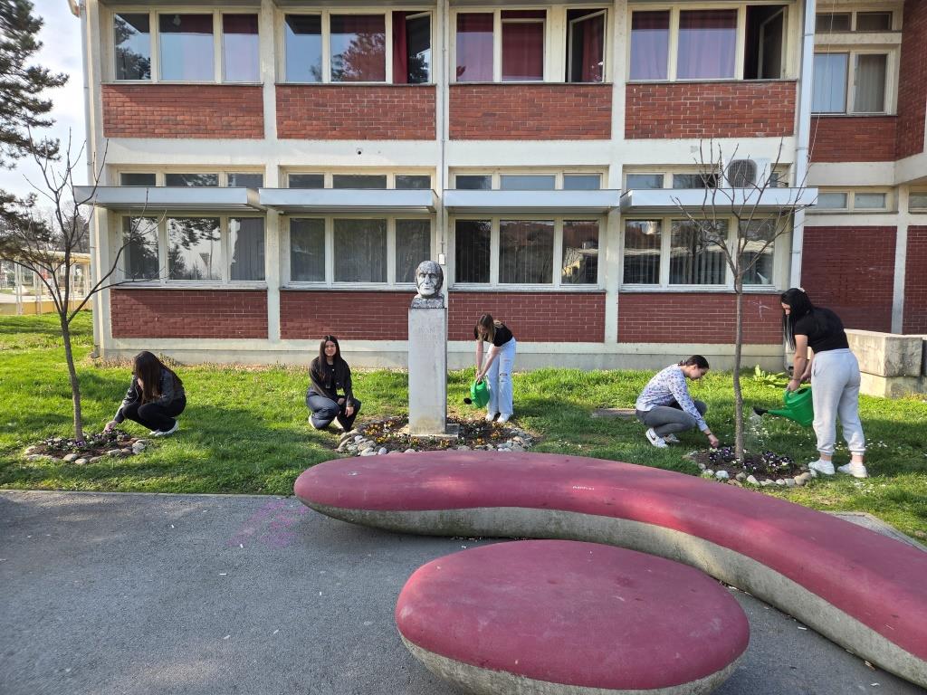Članovi grupe Mladi ekolozi 4. i 5. ožujka prionuli su uređenju tri mala cvjetnjaka maćuhicama. Trebalo je izvaditi uvenule i zimom uništene jesenske maćuhice, okopati zemlju, posipati svježu, isplanirati raspored, posaditi i zaliti nove svježe proljetnice. Kao i do sada, entuzijasti i ljubitelji cvijeća i druženja, učenici trećeg razreda ekonomskog te trećeg i četvrtog razreda komercijalnog usmjerenja s radošću i zanosom uljepšali su prostor ispred škole. Svakodnevna briga je veselje, a ponos profesorice Gordane neizmjeran.